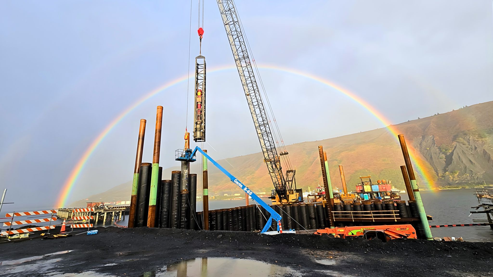 Alaska Marine Project: Steel Piles Meet Nature's Double Rainbow